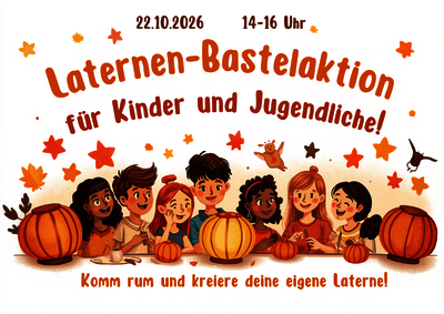 | Information | Wir gestalten gemeinsam schöne Laternen nach Vorlage. Schritt für Schritt entstehen mit buntem Material tolle Laternen, die ihr im Dunkeln zum Strahlen bringen könnt. Das Angebot richtet sich an Kinder und Jugendliche, die gerne kreativ arbeiten und etwas Eigenes gestalten möchten. Vorkenntnisse sind nicht nötig – einfach mitmachen und Spaß am Basteln haben! Am Ende nimmst du deine fertige Laterne mit nach Hause und kannst sie zum Laterne singen mitnehmen oder zuhause als Deko verwenden. |